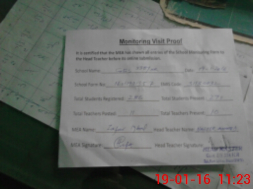 | Attendance Register | Head Teacher | MEA with School | Visit Proof |