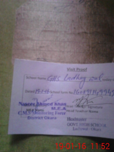 | EMIS Code: 39310082 | Name of School: GHS LADHEY WAL | |||