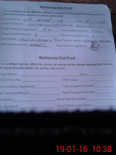 | Attendance Register | Head Teacher | MEA with School | Visit Proof |