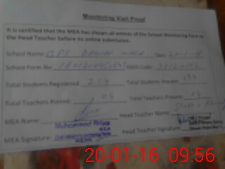 | Attendance Register | Head Teacher | MEA with School | Visit Proof |