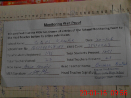 | Certified that this School was Inspected by the Undersigned MEA/DMO Today and the Information Stated Above is as Per Record. | |||||