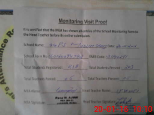 | Attendance Register | Head Teacher | MEA with School | Visit Proof |