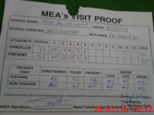 | Attendance Register | Head Teacher | MEA with School | Visit Proof |