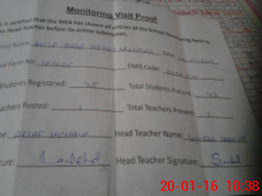 | Certified that this School was Inspected by the Undersigned MEA/DMO Today and the Information Stated Above is as Per Record. | |||||