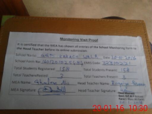 | EMIS Code: 32310221 | Name of School: GGPS KARCH WALA | |||