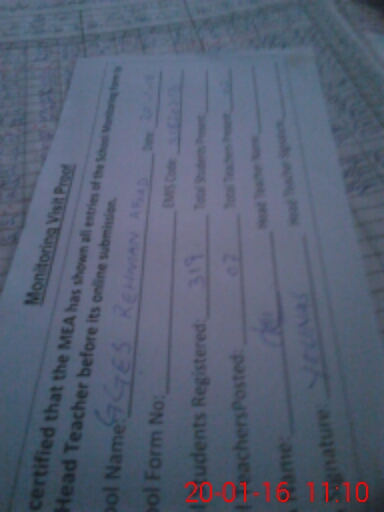 | Attendance Register | Head Teacher | MEA with School | Visit Proof |