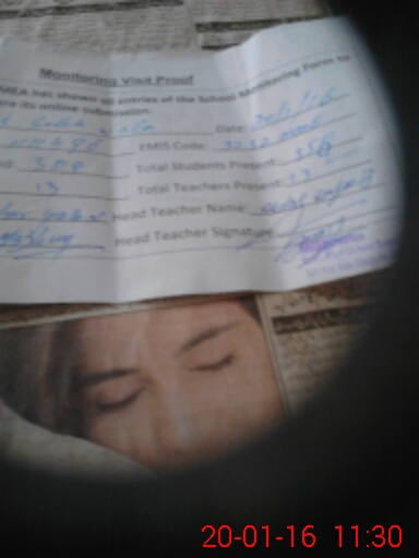 | School Visited by School Health & Nutrition Supervisor (No. of Visits) | 1 | Name1: | Zahid Hussain | Name2: | |