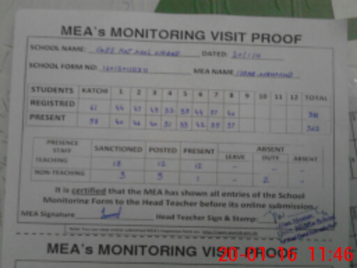 | Attendance Register | Head Teacher | MEA with School | Visit Proof |