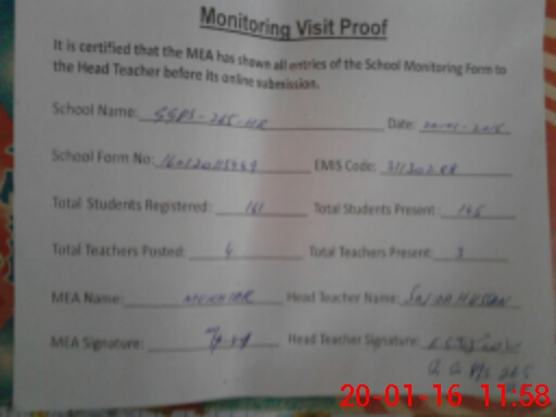 | EMIS Code: 31130288 | Name of School: GGPS CHAK NO 265 HR | |||