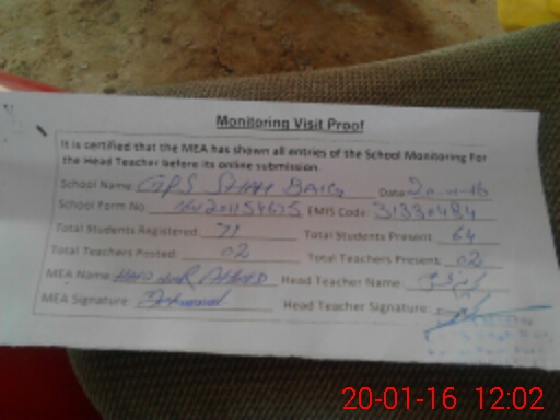 | EMIS Code: 31330484 | Name of School: GPS SHAH BAIG | |||