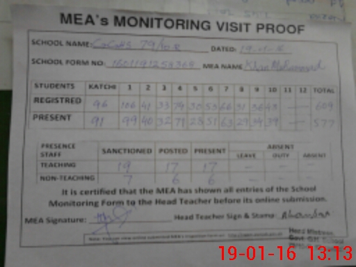 | Attendance Register | Head Teacher | MEA with School | Visit Proof |