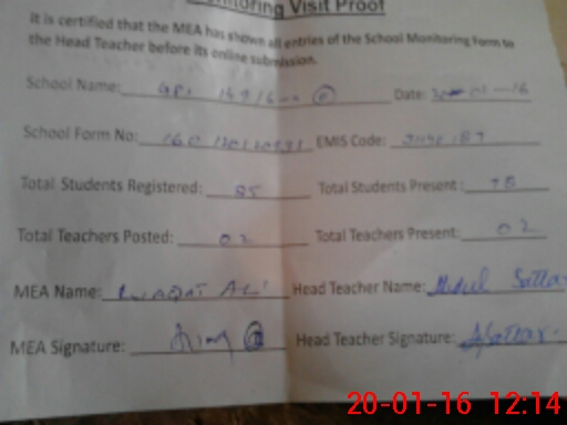 | Attendance Register | Head Teacher | MEA with School | Visit Proof |
