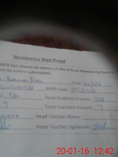 | Attendance Register | Head Teacher | MEA with School | Visit Proof |