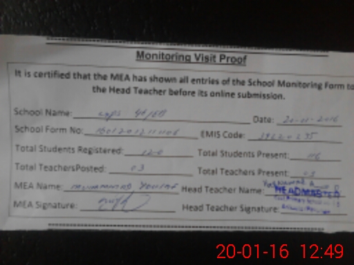 | Certified that this School was Inspected by the Undersigned MEA/DMO Today and the Information Stated Above is as Per Record. | |||||