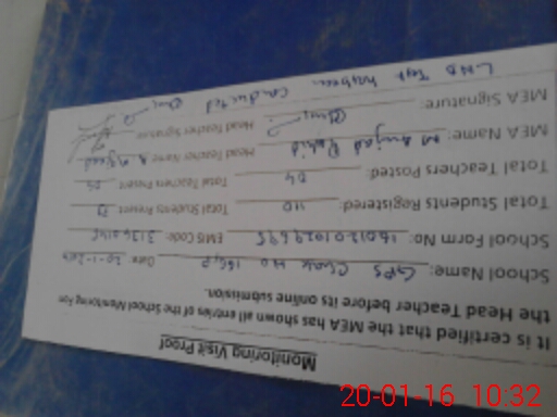 | Certified that this School was Inspected by the Undersigned MEA/DMO Today and the Information Stated Above is as Per Record. | |||||