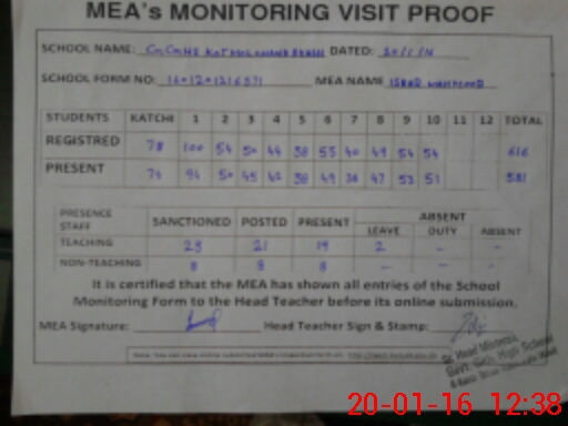 | Attendance Register | Head Teacher | MEA with School | Visit Proof |