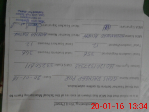 | Attendance Register | Head Teacher | MEA with School | Visit Proof |