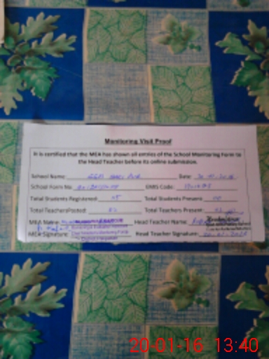 | Attendance Register | Head Teacher | MEA with School | Visit Proof |
