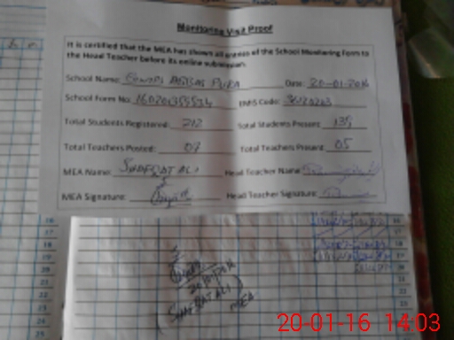 | Attendance Register | Head Teacher | MEA with School | Visit Proof |