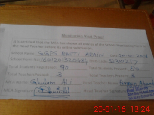 | EMIS Code: 32310217 | Name of School: GGPS BASTI ARAIN | |||