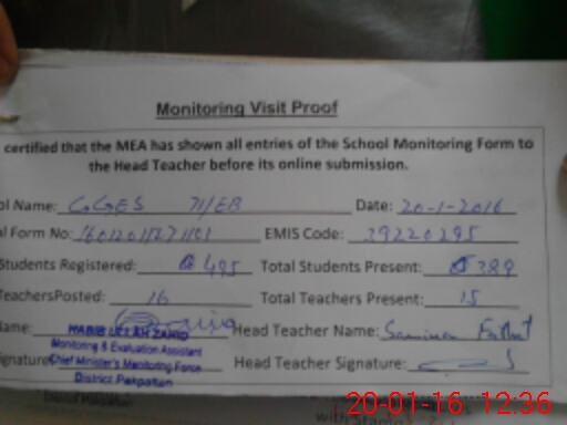 | EMIS Code: 39220295 | Name of School: GGHS 71 EB | |||