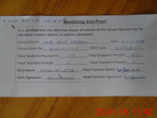| Attendance Register | Head Teacher | MEA with School | Visit Proof |