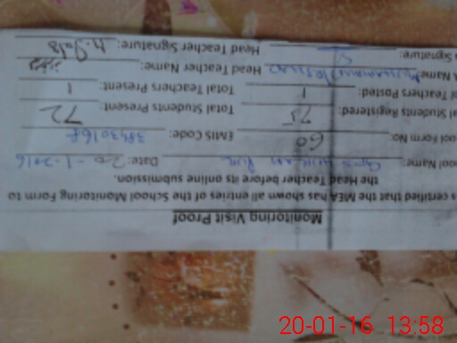 | Attendance Register | Head Teacher | MEA with School | Visit Proof |