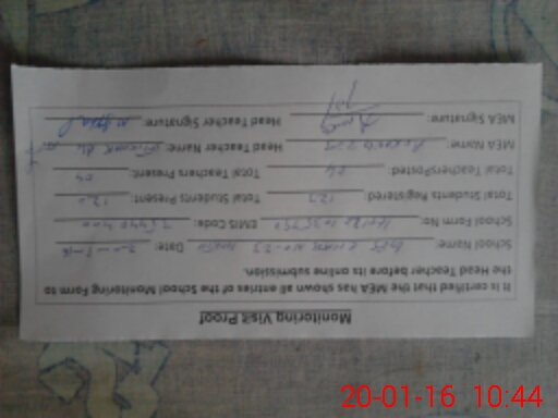 | Attendance Register | Head Teacher | MEA with School | Visit Proof |