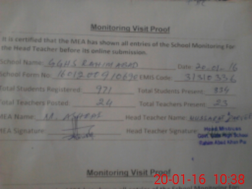 | EMIS Code: 31310336 | Name of School: GGHS RAHIM ABAD NO. 1 | |||