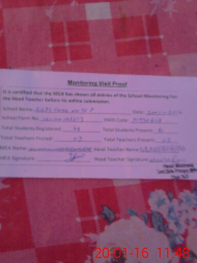 | Certified that this School was Inspected by the Undersigned MEA/DMO Today and the Information Stated Above is as Per Record. | |||||