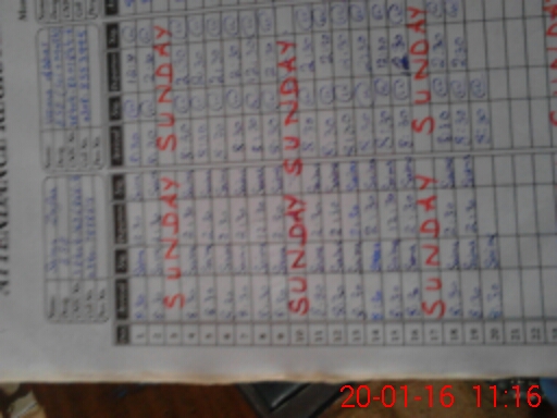 | CNIC | Full Name | Designation | R/C | Absence During Last Calender Month |