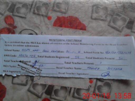 | Remarks (Use Separate Page if Required): School building under repairing since May 2015 and now school working in private house | |||||