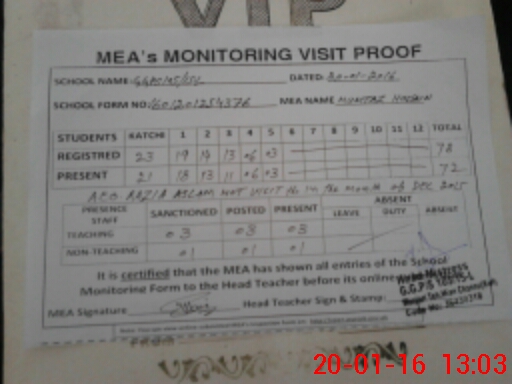 | Attendance Register | Head Teacher | MEA with School | Visit Proof |