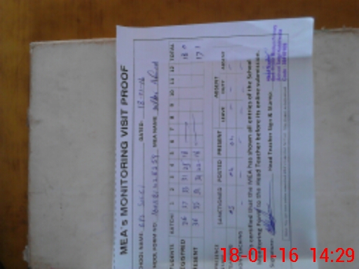 | Attendance Register | Head Teacher | MEA with School | Visit Proof |