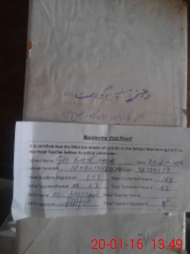 | Attendance Register | Head Teacher | MEA with School | Visit Proof |