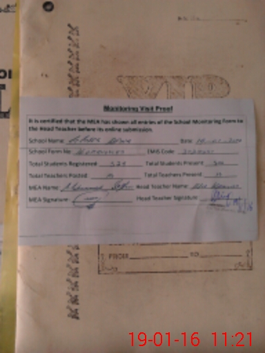| Attendance Register | Head Teacher | MEA with School | Visit Proof |