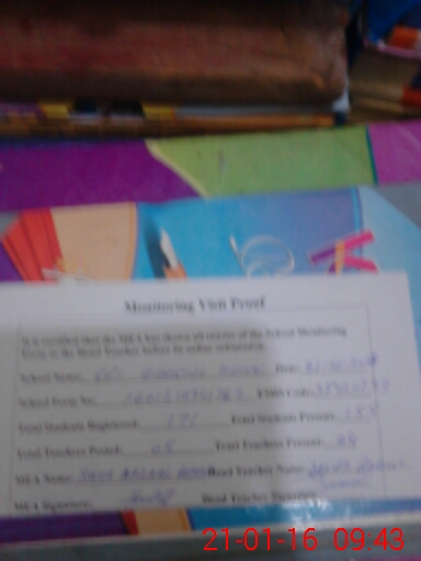 | School Visited by School Health & Nutrition Supervisor (No. of Visits) | 1 | Name1: | M RIZWAN | Name2: | Nil |