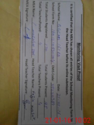 | Certified that this School was Inspected by the Undersigned MEA/DMO Today and the Information Stated Above is as Per Record. | |||||