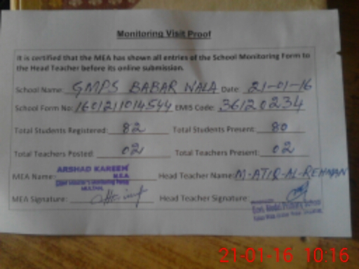 | EMIS Code: 36120234 | Name of School: GMPS BABAR WALA (KALO WALA) | |||