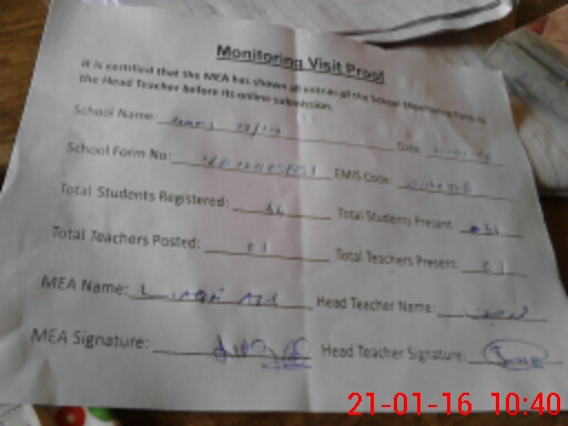 | Attendance Register | Head Teacher | MEA with School | Visit Proof |