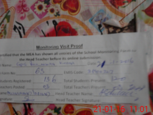 | Attendance Register | Head Teacher | MEA with School | Visit Proof |