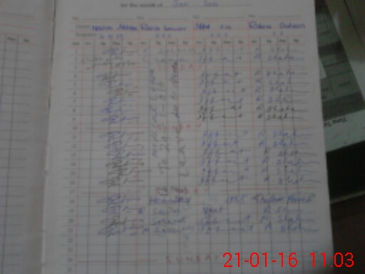 | CNIC | Full Name | Designation | R/C | Absence During Last Calender Month |