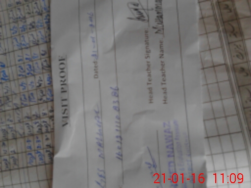 | Attendance Register | Head Teacher | MEA with School | Visit Proof |