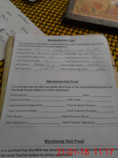 | Attendance Register | Head Teacher | MEA with School | Visit Proof |