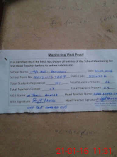 | Certified that this School was Inspected by the Undersigned MEA/DMO Today and the Information Stated Above is as Per Record. | |||||