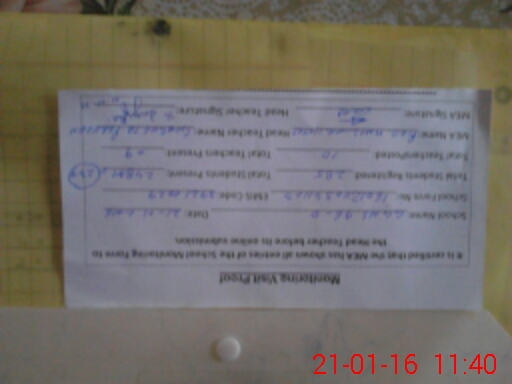 | School Visited by School Health & Nutrition Supervisor (No. of Visits) | 1 | Name1: | HAFIZ MEHMOOD SAEED | Name2: | |