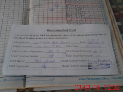 | Attendance Register | Head Teacher | MEA with School | Visit Proof |