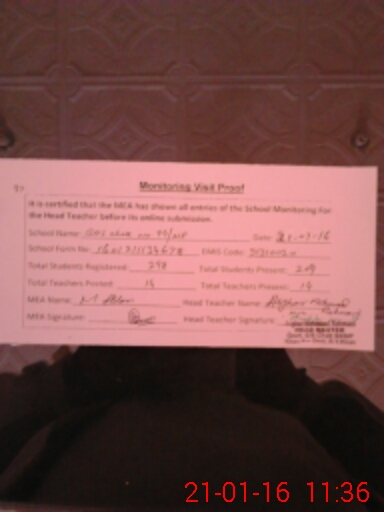 | Certified that this School was Inspected by the Undersigned MEA/DMO Today and the Information Stated Above is as Per Record. | |||||