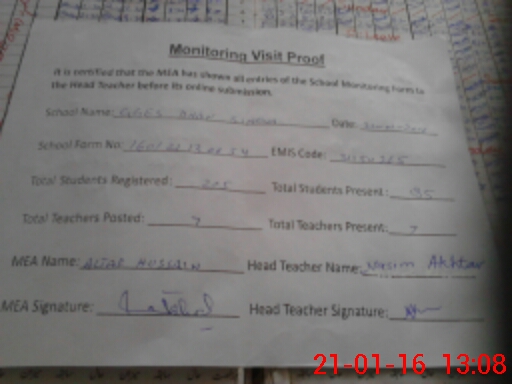 | Attendance Register | Head Teacher | MEA with School | Visit Proof |