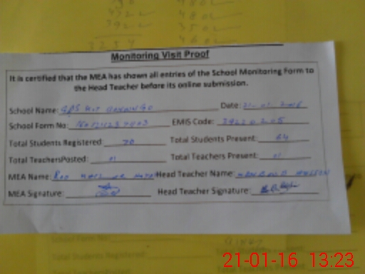 | Certified that this School was Inspected by the Undersigned MEA/DMO Today and the Information Stated Above is as Per Record. | |||||